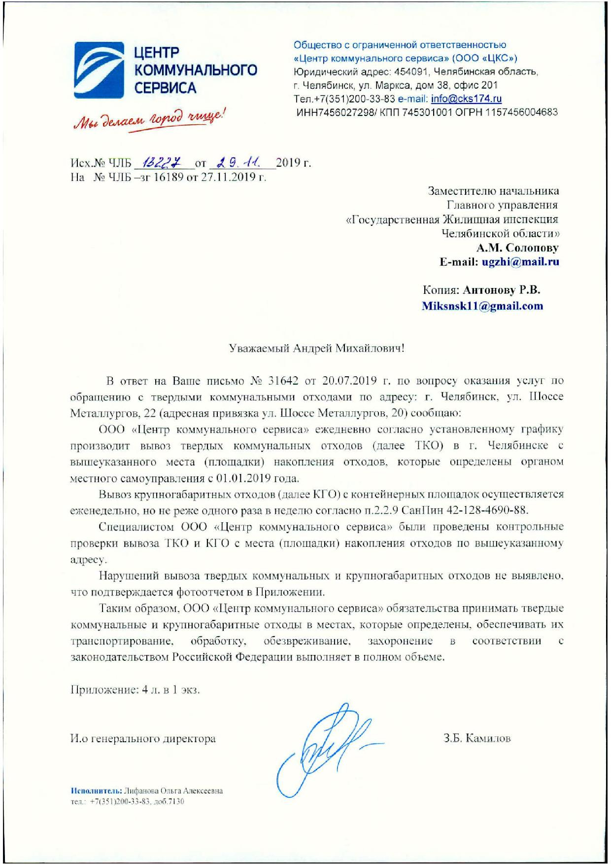 Номер жалобы:61501 Тип жалобы:Иные проблемы ЖКХ Название объекта: Регион:Челябинская область Город:Челябинск Адрес:шоссе Металлургов, 20 Описание жалобы:Большач куча мусорных пакетов с мусором который скоро начнет разлетаться лежит уже больше 2 недель возле мусорной площадки и никто ее не вывозит Статус: