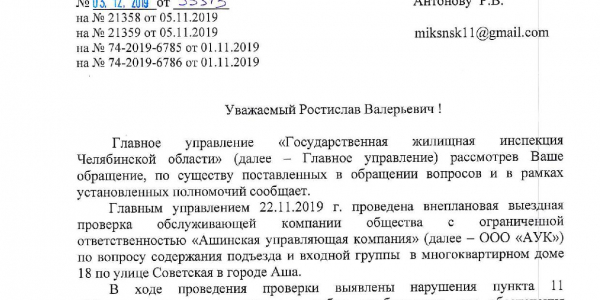 Номер жалобы:61583 Тип жалобы:Иные проблемы ЖКХ Название объекта: Регион:Челябинская область Город:Аша Адрес:Советская улица, 18 Описание жалобы:Подьезд уничтоженный, на ремонт не реагирует жкх, второй подъезд Статус: