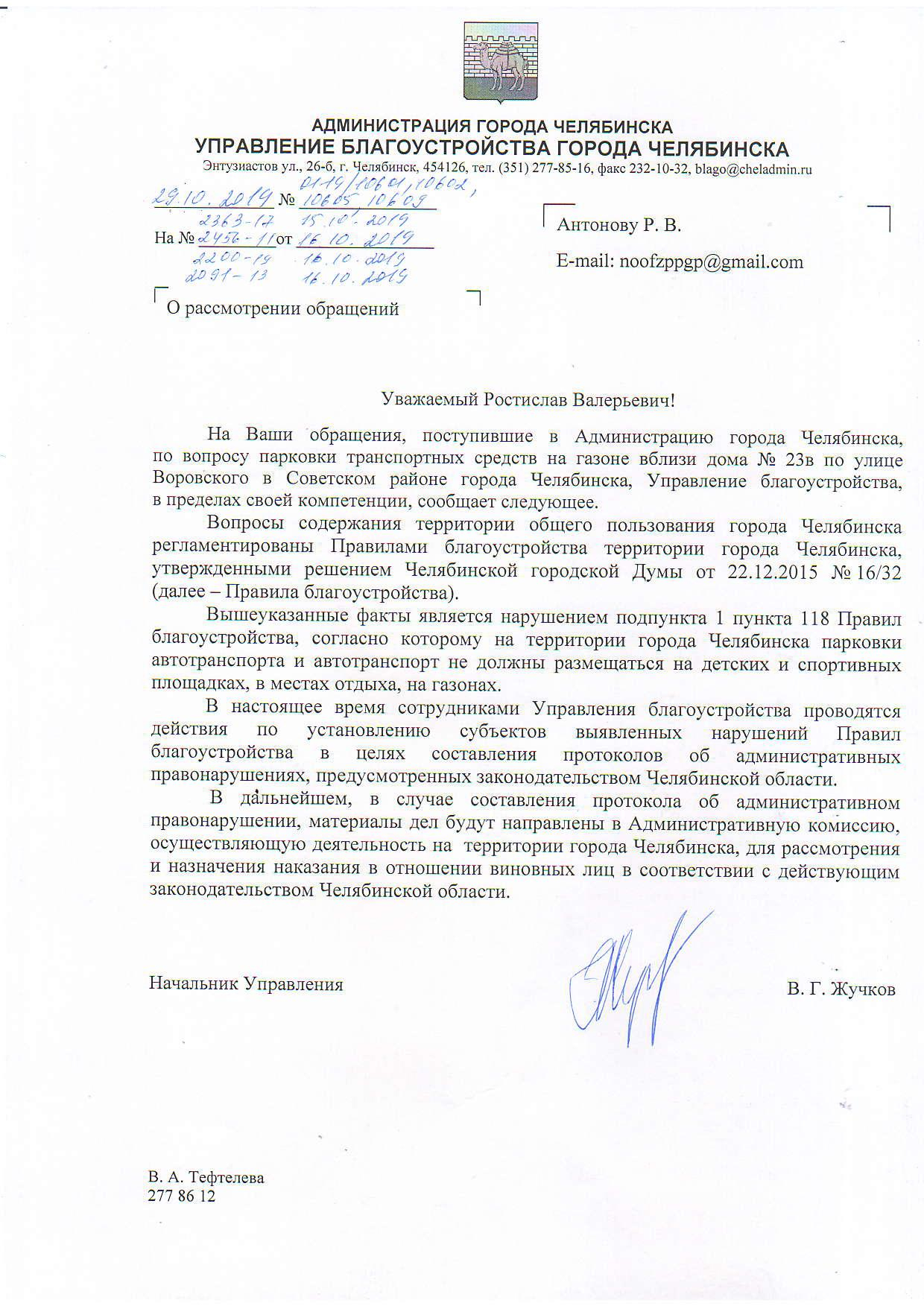 Номер жалобы:61191 Тип жалобы:Иные проблемы ЖКХ Название объекта: Регион:Челябинская область Город:Челябинск Адрес:улица Воровского, 23В Описание жалобы:Парковка на газоне Статус: