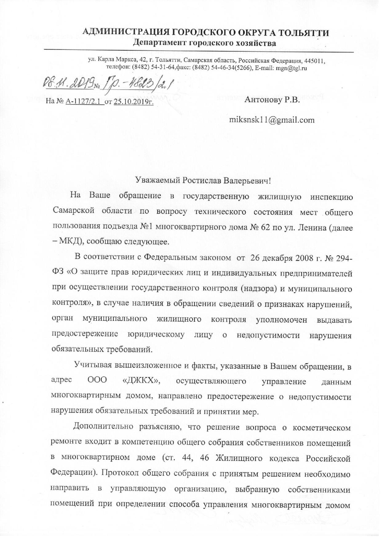 Номер жалобы:60871 Тип жалобы:Иные проблемы ЖКХ Название объекта:УК "Департамент ЖКХ" Регион:Самарская область Город:г. Тольятти Адрес:улица Ленина, д. 62, подъезд 1 Описание жалобы:Заходишь в подъезд, как в подвал, за все платим, только за что, непонятно. Статус:
