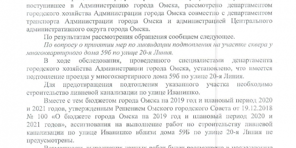 Номер жалобы:61022 Тип жалобы:Иные проблемы ЖКХ Название объекта: Регион:Омская область Город:Омск Адрес:улица 20-я Линия, 59Б Описание жалобы:На краю небольшого сквера, в котором отдыхают жители всего квартала, постоянно стоит вот такое болото. Причём это асфальтированный участок проезда, который ещё является дорогой для пешеходов. Теперь люди ходят по земле, а в дождь по грязи. Здесь вроде есть ливневка, но она не работает Статус: