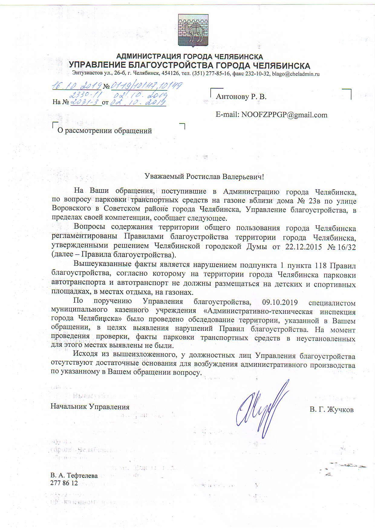 Номер жалобы:60571 Тип жалобы:Иные проблемы ЖКХ Название объекта: Регион:обл. Челябинская Город:Челябинск Адрес:улица Воровского, 23В Описание жалобы:ПДД Парковка на газоне Статус: