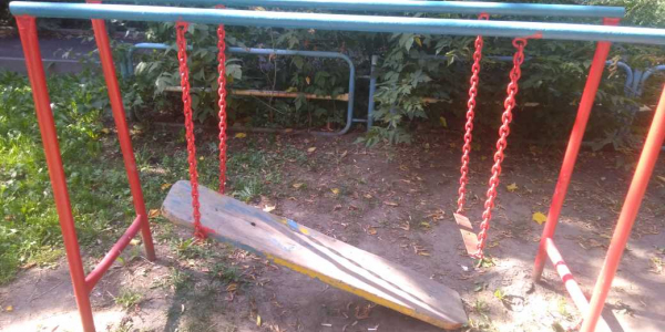 Номер жалобы:59142 Тип жалобы:Иные проблемы ЖКХ Название объекта: Регион:Челябинская область Город:Челябинск Адрес:улица Васенко, 100 Описание жалобы:Во дворе дома, находящегося по адресу: г. Челябинск, ул. Васенко, 100, расположена детская площадка. Однако "подвесные качели" находятся в неудовлетворительном состоянии. Прошу починить качели. Статус: