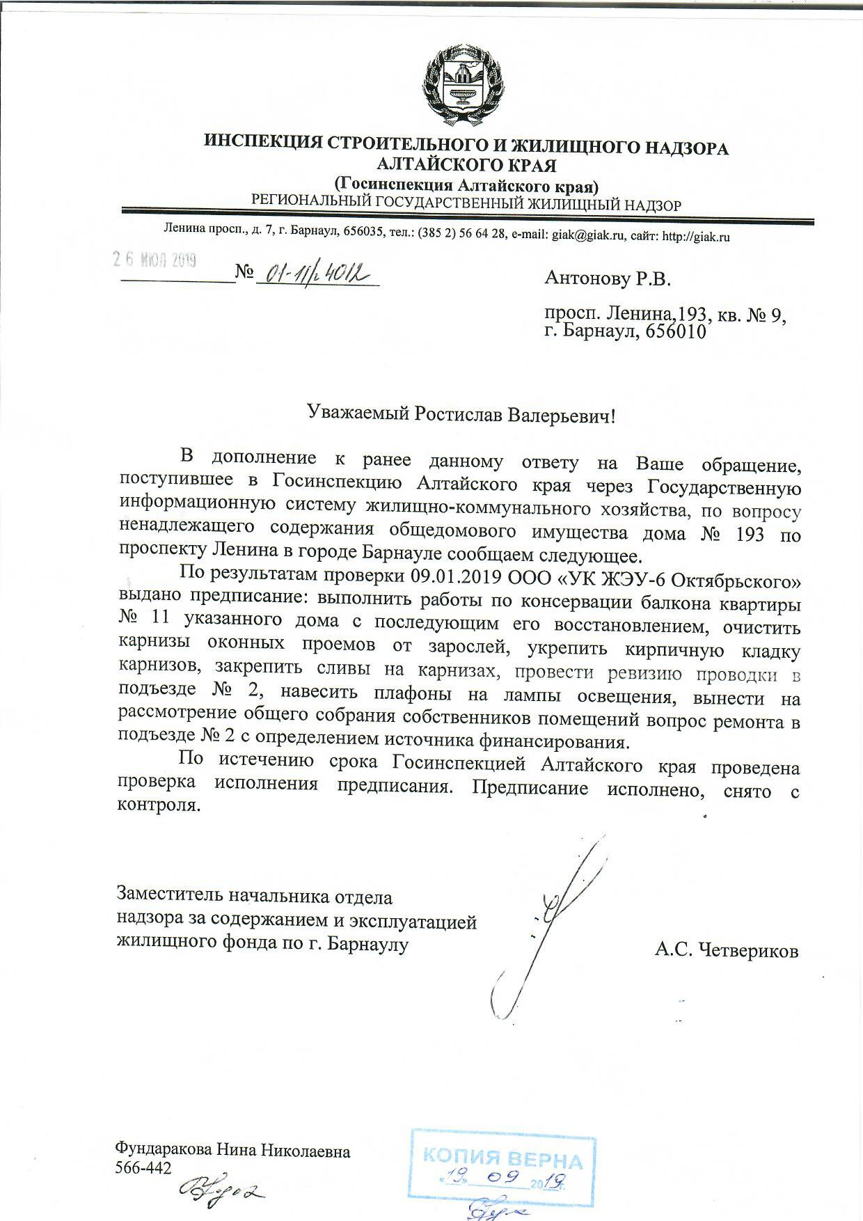 госинспекция сняла предписание с УК ЖЭУ-6 оКТЯБРЬСКОГО, с чем мы категорически не согласны. Статус: