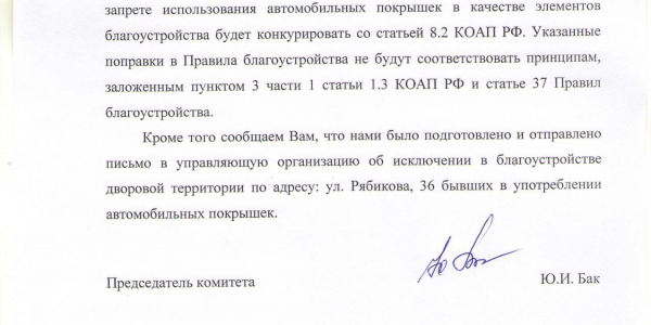Номер жалобы:58611 Тип жалобы:Иные проблемы ЖКХ Название объекта: Регион:Иркутская область Город:Братск Адрес:улица Рябикова, 36 Описание жалобы:Использование опасных отходов 4го класса (автомобильные шины) в качестве элементов благоустройства. В природоохранную прокуратуру Братска Статус: