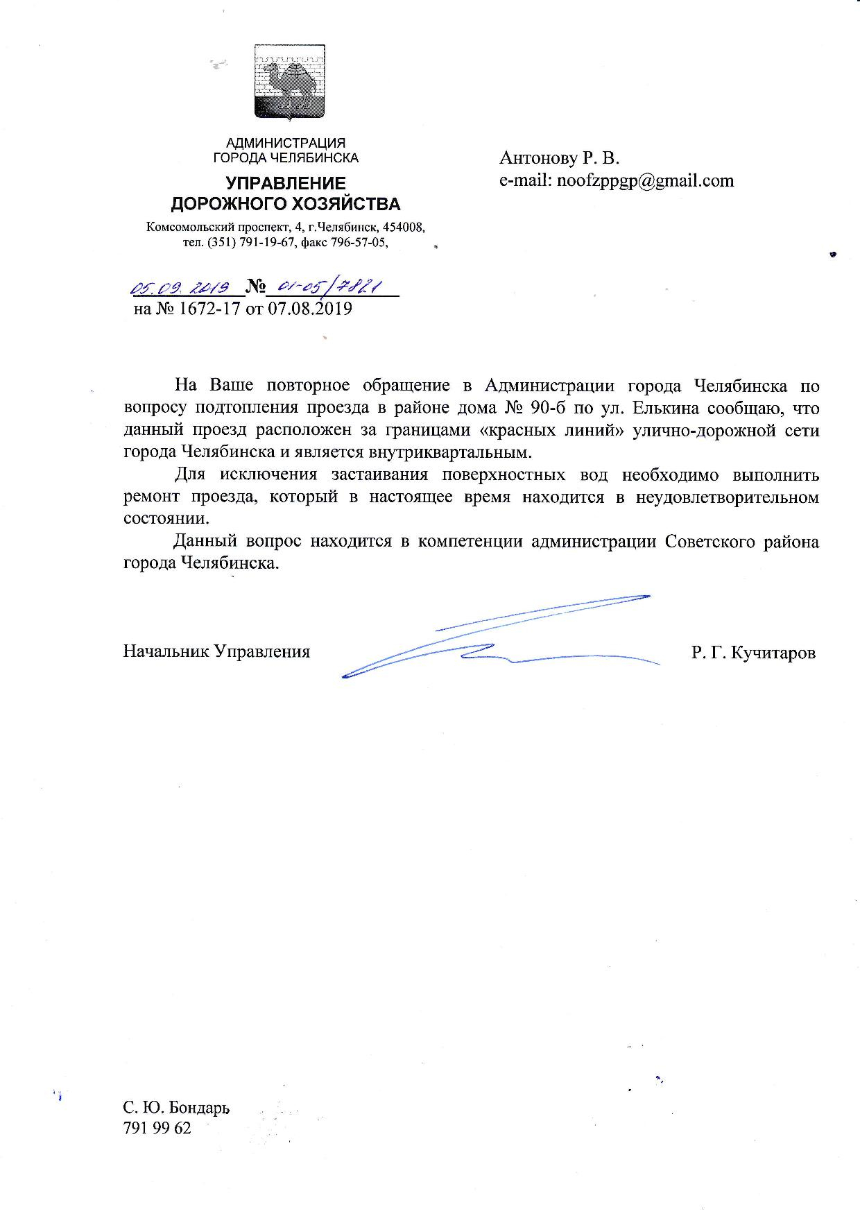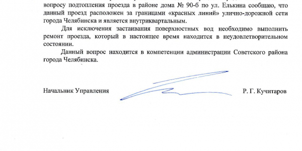 Номер жалобы:58237 Тип жалобы:Иные проблемы ЖКХ Название объекта: Регион:Челябинская область Город:Челябинск Адрес:улица Елькина, 90Б Описание жалобы:Необходимо организовать водоотвод. Каждый раз после дождя на несколько дней образуется лужа и невозможно выйти из двора. Статус: