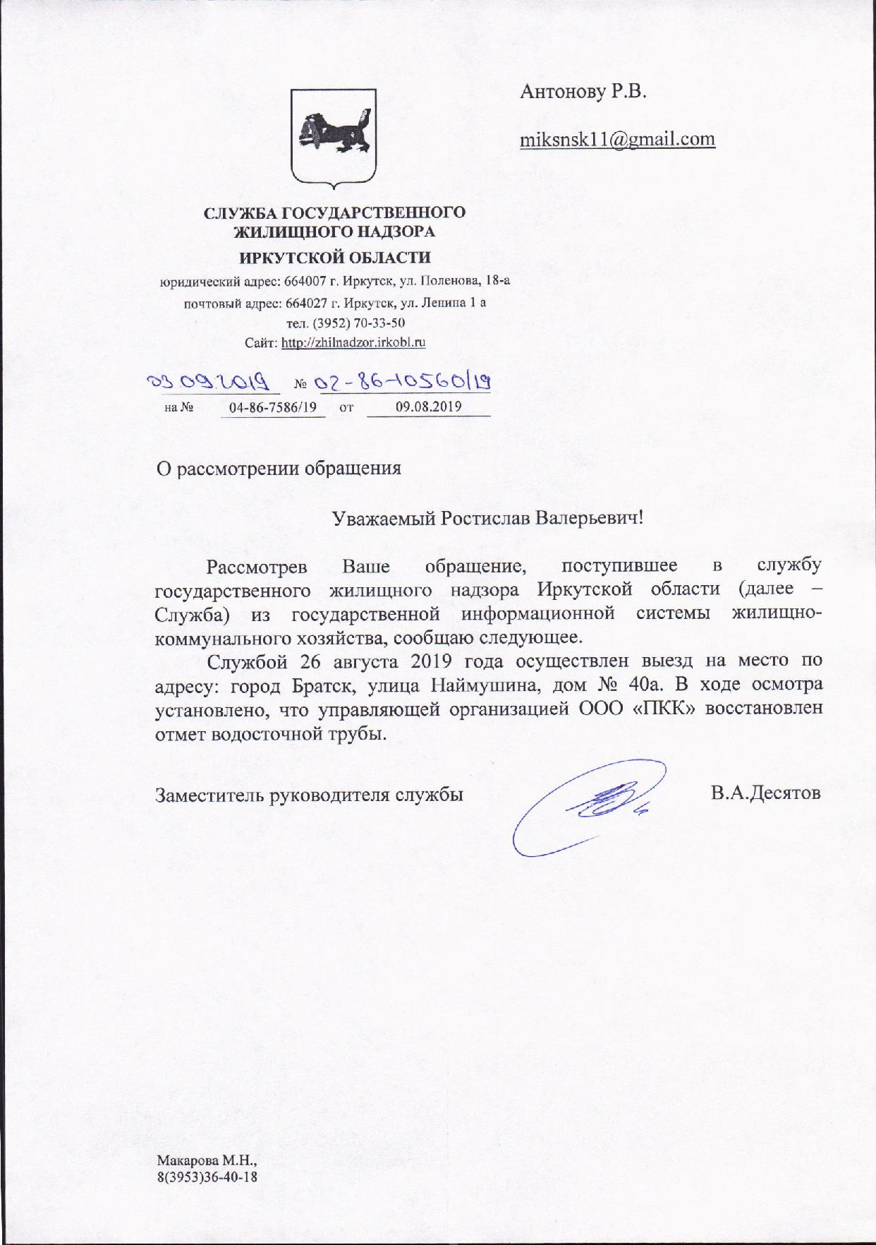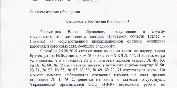 Номер жалобы:58052 Тип жалобы:Иные проблемы ЖКХ Название объекта: Регион:Иркутская область Город:Братск Адрес:улица Наймушина, 44 Описание жалобы:Во втором подъезде необходима замена почтовых ящиков Статус: