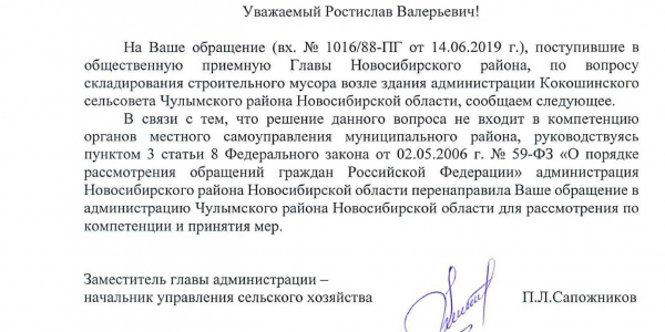 Номер жалобы:56034 Тип жалобы:Иные проблемы ЖКХ Название объекта: Регион:Новосибирская область Город:поселок Кокошино Адрес:Лесная улица, 5 Описание жалобы:Строительные плиты убрать у Администрации Статус: