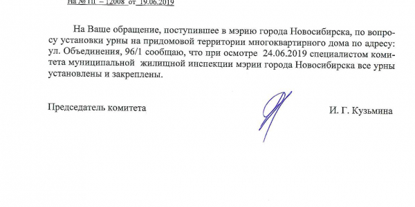 Номер жалобы:56086 Тип жалобы:Иные проблемы ЖКХ Название объекта: Регион:Новосибирская область Город:Новосибирск Адрес:улица Объединения, 96/1 Описание жалобы:Урна не зафиксирована Статус: