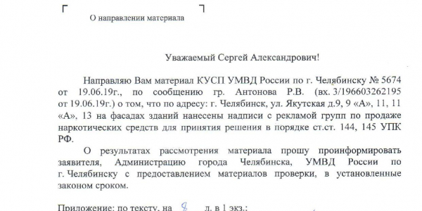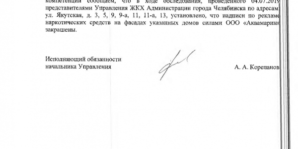 Номер жалобы:56103 Тип жалобы:Иные проблемы ЖКХ Название объекта: Регион:Челябинская область Город:Челябинск Адрес:жилой комплекс Квартал на Дзержинского Описание жалобы:1086-9 По адресам: Якутская 9, 9а, 11, 11а, 13. На фасадах домов нанесены надписи с ссылками на ресурсы по продаже наркотических средств. Статус: