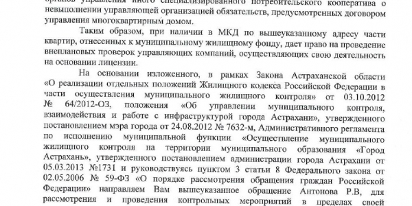 Номер жалобы:56036 Тип жалобы:Иные проблемы ЖКХ Название объекта: Регион:Астраханская область Город:Астрахань Адрес:улица Джона Рида, 33 Описание жалобы:Здравствуйте. Проживаю во 2 подъезде девятиэтажного дома. По словам жильцов с 1 подъезда запах канализационного слива присутствует уже месяц. Во 2 подъезде этот запах уже неделю. Я живу на 1 этаже и на кухне этот запах заходит с улицы. У нас УК Жилкомсервис, по их словам подвал чистый, это около дома что то с канализацией, заявку подали Астроводоканалу. Звонили в Астроводоканал дежурной приемной ответ таков - машина сломалась, на данный момент машины нет, ждите. Папу недель назад сотрудники водоканала приходили, проблему пытались решать или нет не понятно. Сколько так придется ждать неизвестно. Подскажите куда обратится что делать чтобы решили эту проблему как можно скорее. Статус: