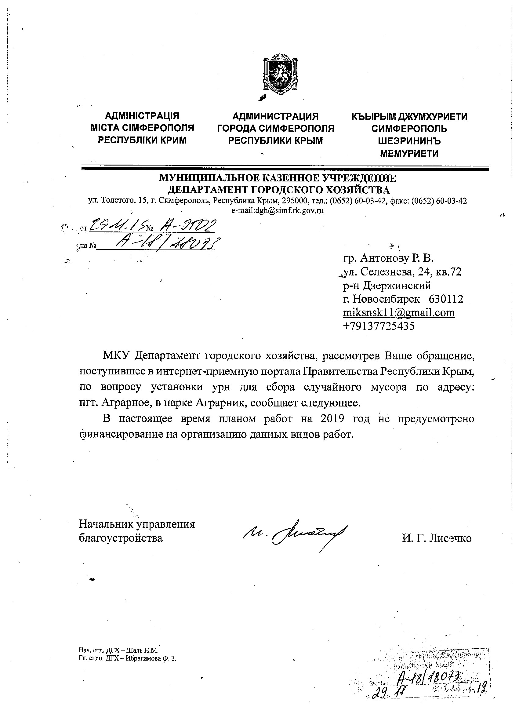 Попрошайки на улицах стали достопримечательностью Симферополя, так на протяжении нескольких лет на перекрестке пр. Победы-Симферополя разъезжает на коляске инвалид, нарушая ПДД, ему хватает денег на штрафы или ГИБДД никак не реагирует. Прошу отчитаться о борьбе с попрошайками в границах г. Симферополь. Статус: