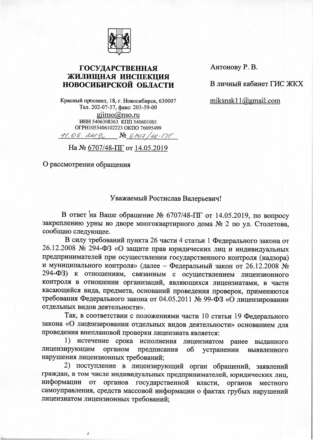 Номер жалобы:54268 Тип жалобы:Иные проблемы ЖКХ Название объекта: Регион:Новосибирская область Город:Новосибирск Адрес:улица Столетова, 2 Описание жалобы:Урна не прикреплена Статус: