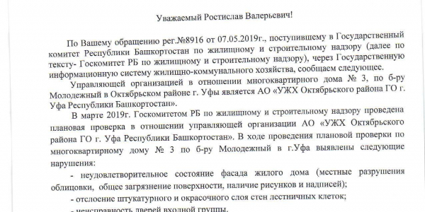Номер жалобы:54265 Тип жалобы:Иные проблемы ЖКХ Название объекта: Регион:Республика Башкортостан Город:Уфа Адрес:Молодёжный бульвар, 3 Описание жалобы:Главный вход в дом в таком ужасном виде, входная группа с тамбуром и без дверей... Статус: