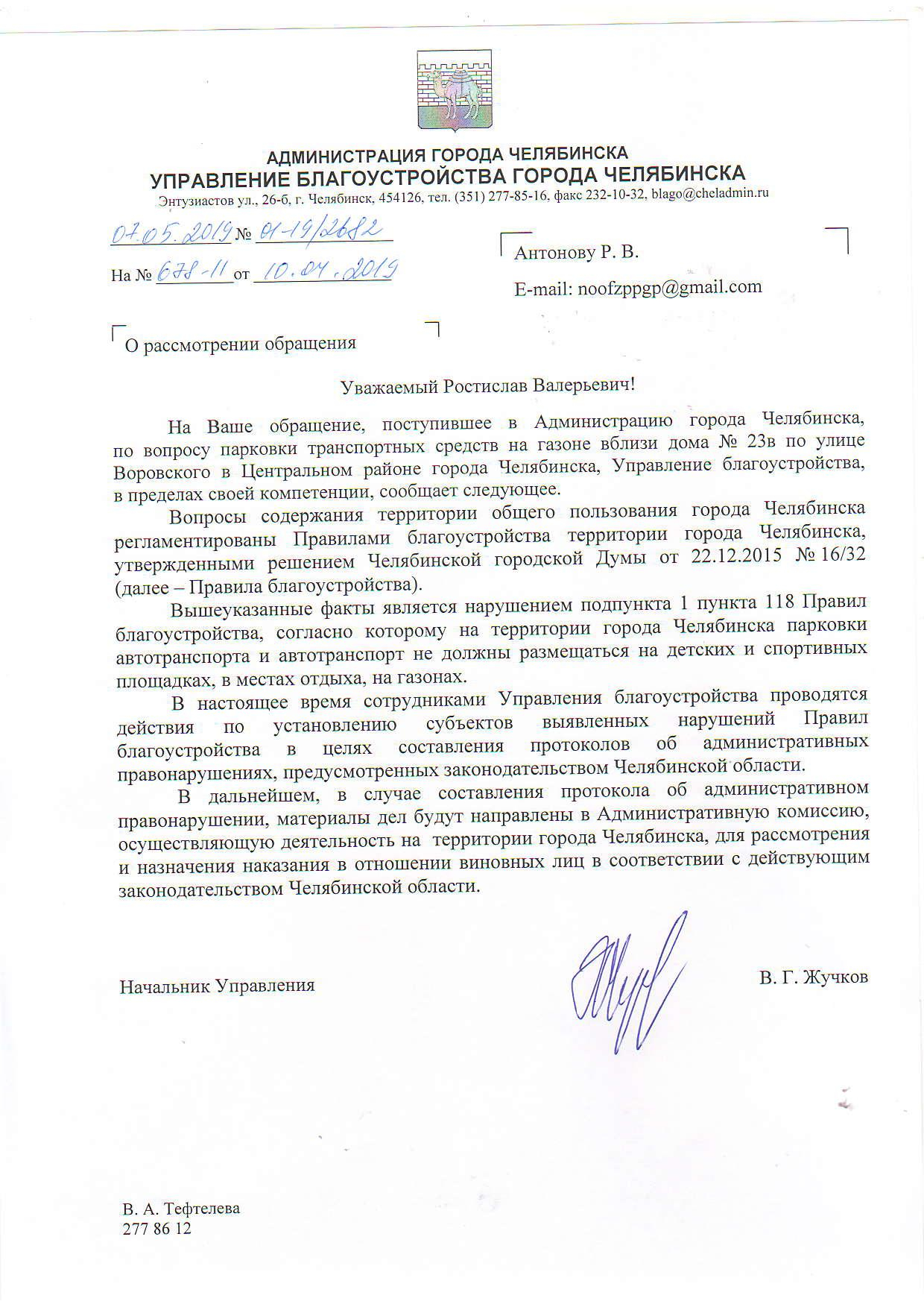 Номер жалобы:53051 Тип жалобы:Иные проблемы ЖКХ Название объекта: Регион:Челябинская область Город:Челябинск Адрес:улица Елькина, 92В Описание жалобы:Массовая парковка на газоне. Статус: