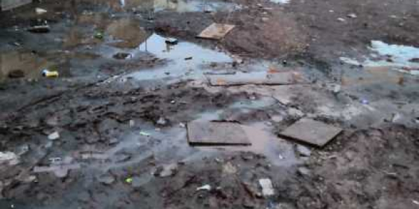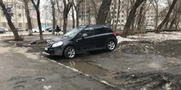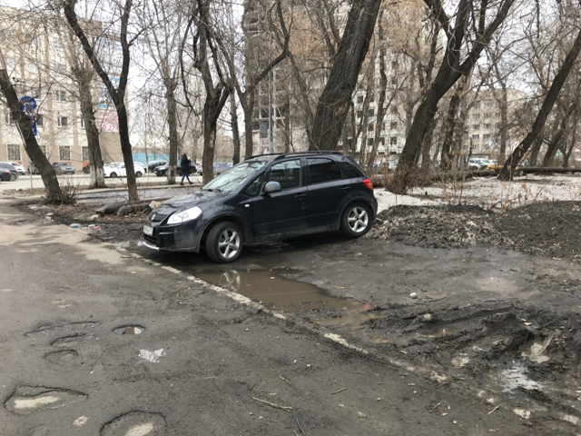 В этом же дворе, возле дома 8, отсутствует асфальтовое покрытие (с западной и южной стороны дома), сплошные грязь и огромные лужи. При сдаче данного дома сэкономили на дорожном полотне и часть прилигающей территории отсыпали мелким щебнем.