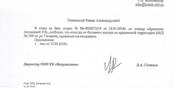 Номер жалобы:52834 Тип жалобы:Иные проблемы ЖКХ Название объекта: Регион:Иркутская область Город:Братск Адрес:улица Гагарина, 109 Описание жалобы:Благоустройство по ГОСТУ... Статус: