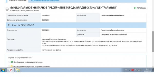 Номер жалобы:52827 Тип жалобы:Иные проблемы ЖКХ Название объекта:жкх Регион:Омская область Город:омск Адрес:пр.Мира 82/1 п1 Описание жалобы:писали жалобы чтоб провода эти убрали, которые нужные оставили но в специальной трубе дыры специально просверлили для данной трубы (вроде как ставиться обычная пластиковая труба ) как во многих домах чтобы аккуратно было, всем плевать , что делать с этими проводами ? Провода торчат интернет в основном , есть и электро провода оголенные Статус:
