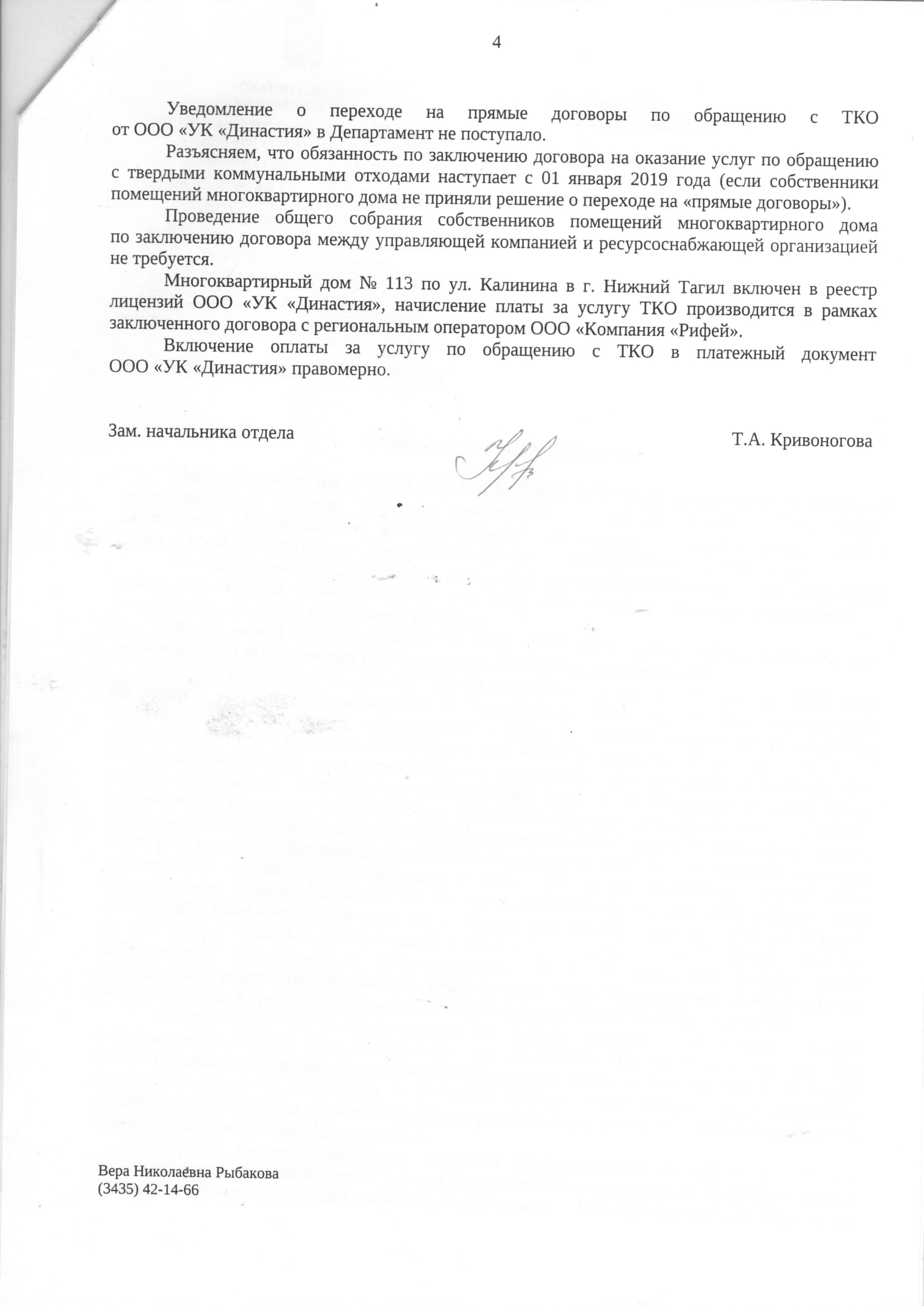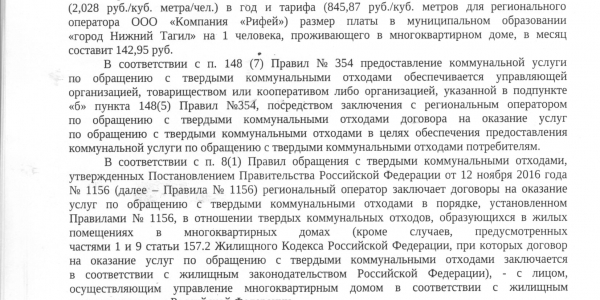 Номер жалобы:52560 Тип жалобы:Иные проблемы ЖКХ Название объекта: Регион:Свердловская область Город:Нижний Тагил Адрес:улица Калинина, 113 Описание жалобы:Данная графа со слов управляющей компании введена В общую платежку по решению общего собрания жильцов, собрания жильцов не было. (Очного/заочного). Просим проверить действия старшей по дому и директора управляющей компании на законность. Никто из жильцов не подписывал. Лично мы против и наши соседи и многие. Статус: