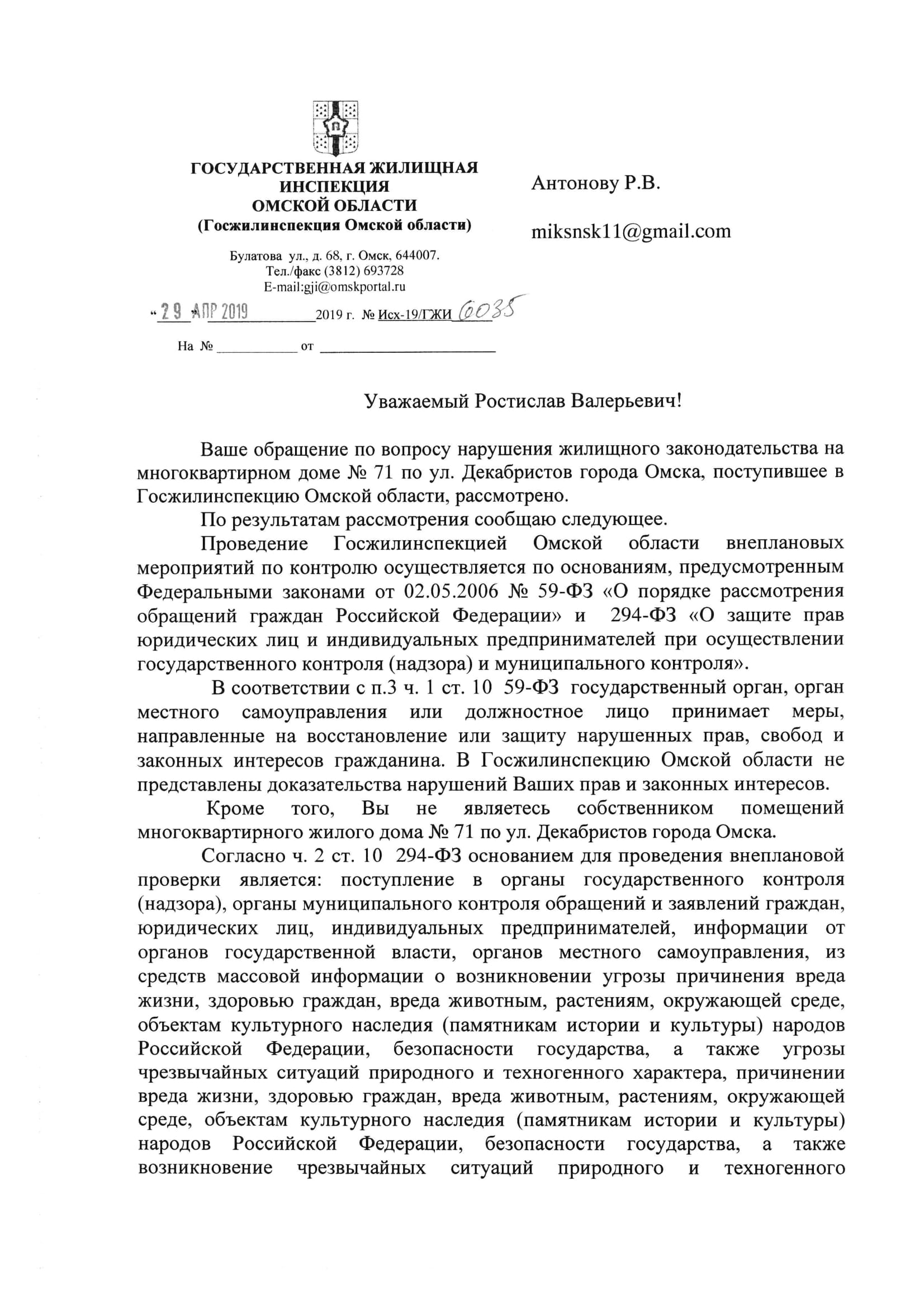 Номер жалобы:52696 Тип жалобы:Иные проблемы ЖКХ Название объекта: Регион:Омская область Город:Омск Адрес:улица Декабристов, 71 Описание жалобы:Уважаемый, Гражданский патруль. На вас одна надежда. Каждый год повторяется одно и тоже. В доль дома по улице Декабристов 71 не пройти. Ни пешком, ни с коляской. На все вопросы к старшему по дому одни отмашки. Звоники в Жилищник 6 тоже ни к чему не привели. На просьбу прислать машину и хотя бы пару раз откачать воду, сказано было, что такой машины нет Статус: