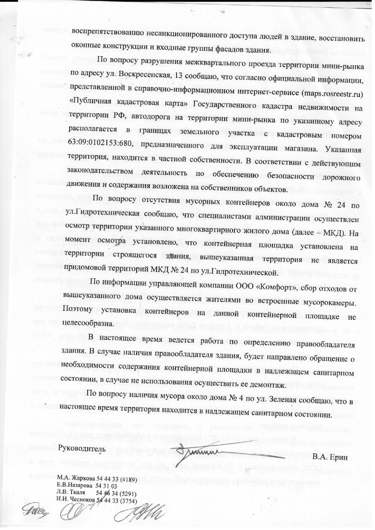 Номер жалобы:52284 Тип жалобы:Иные проблемы ЖКХ Название объекта: Регион:Самарская область Город:Тольятти Адрес:Гидротехническая, 24 Описание жалобы:Мусорных контейнеров нет! Ежедневный мусор везде! Звоним постоянно в УК, нас не слышат! Постоянно сваливают на других операторов по вывозу, то говорили то, что это их территория, но туда только крупный мусор можно выкидывать, а теперь это не к нам вопросы, к этому мы отношения не имеем. Скоро начнётся тепло, этот весь мусор повсюду начнёт гнить, вонять. За домом бегают дети! Статус: