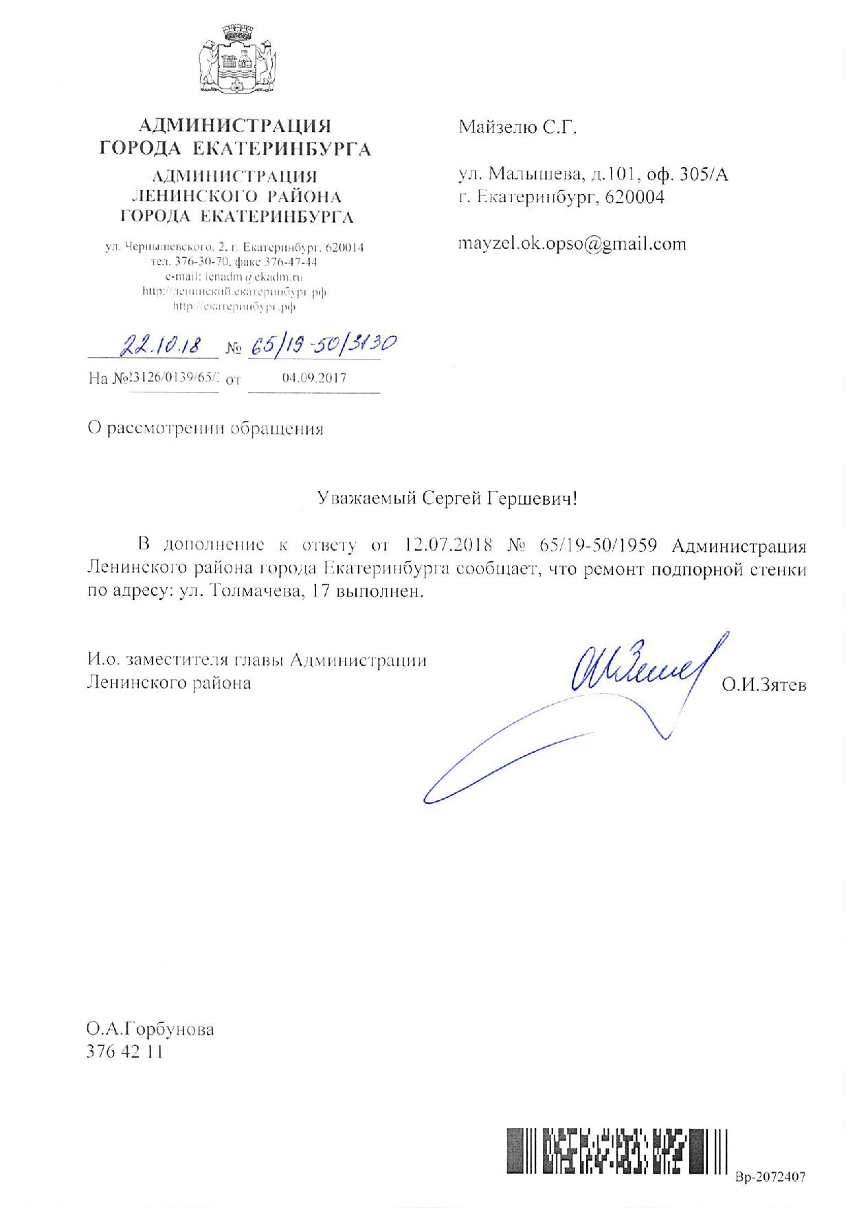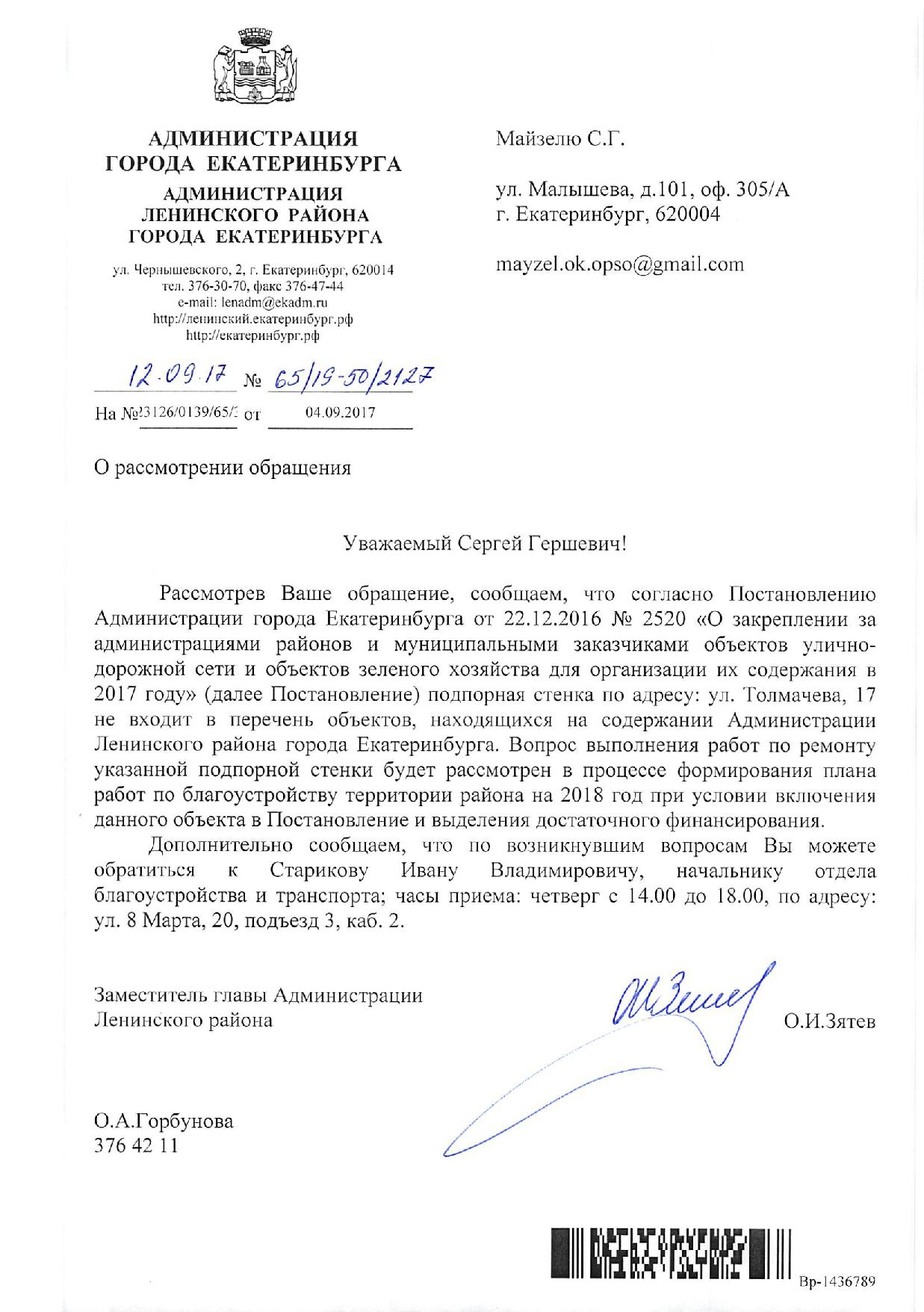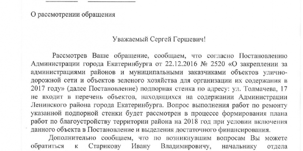 Номер жалобы:24258 Тип жалобы:Ненадлежащее содержание малых архитектурных форм Название объекта:Екатеринбург Регион:Свердловская область Город:Екатеринбург Адрес:Толмачёва, 17 Описание жалобы:Необходим ремонт облицовки подпорной стенки со стороны ул. Толмачёва Статус: