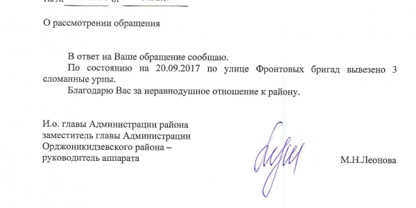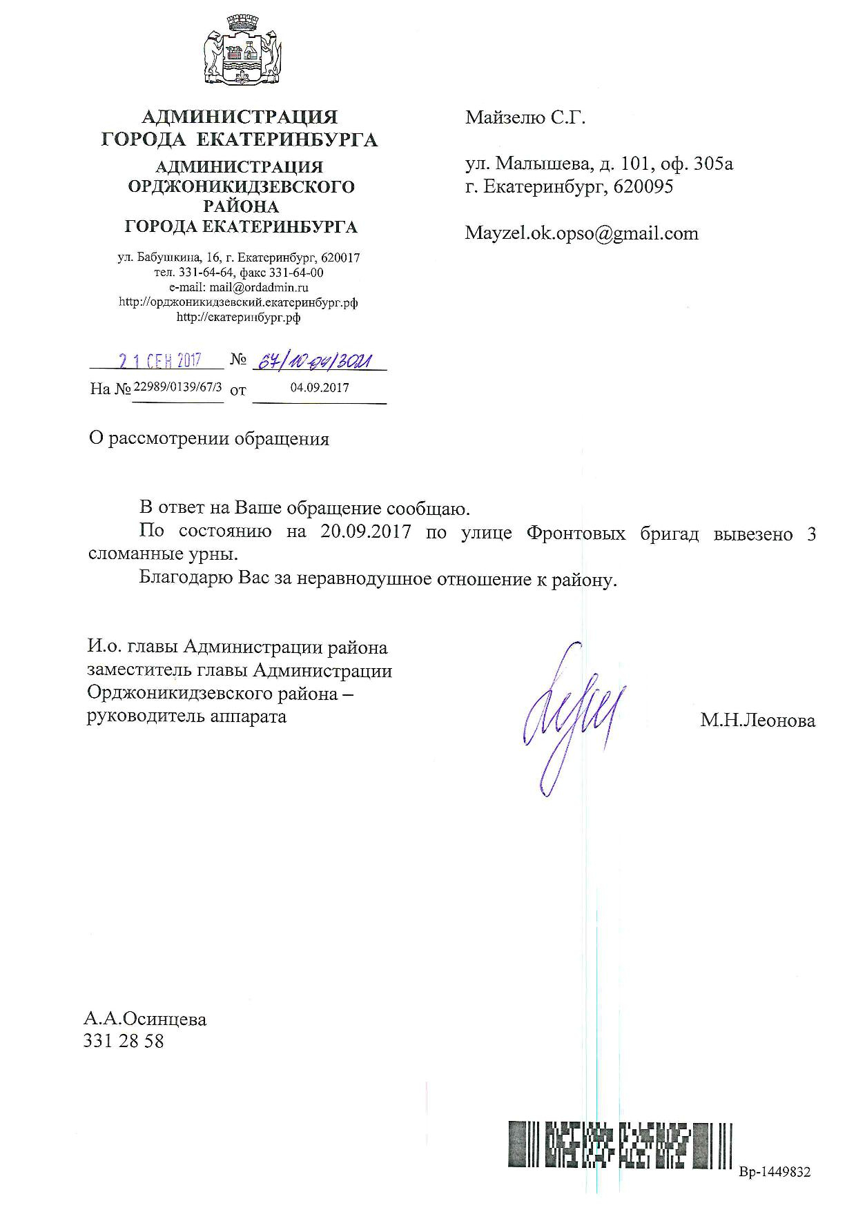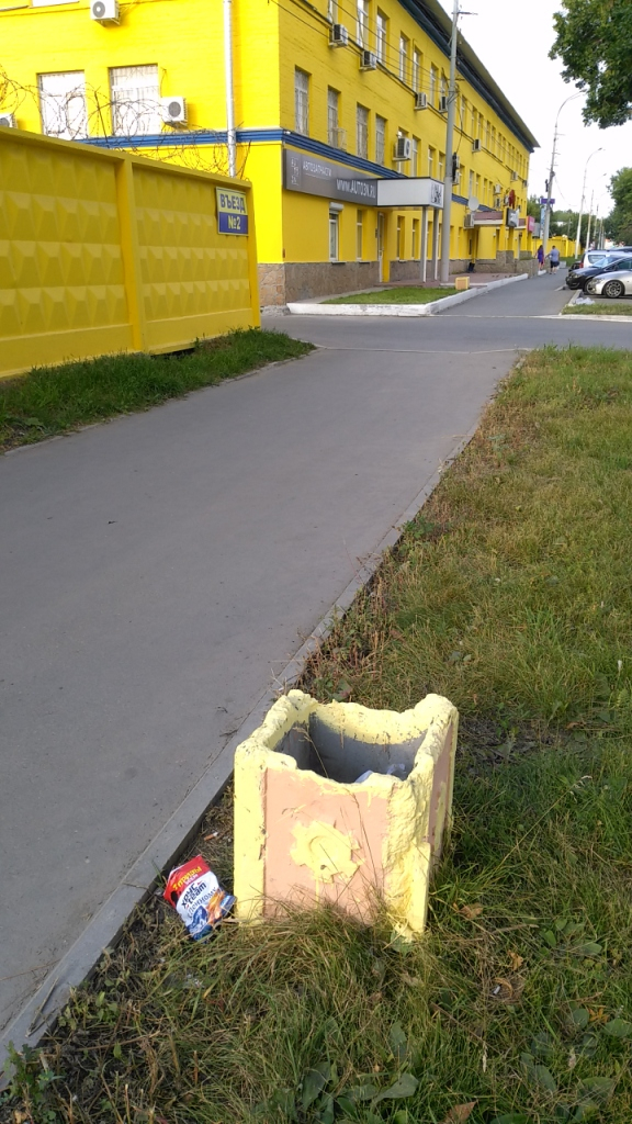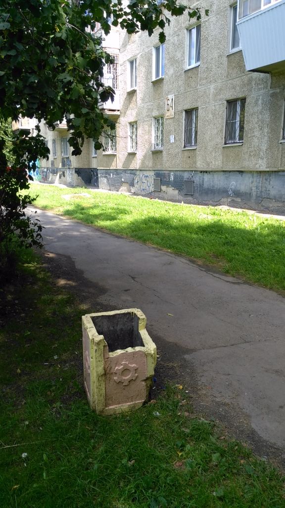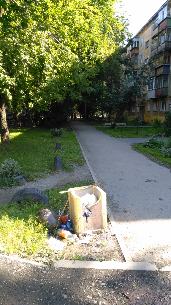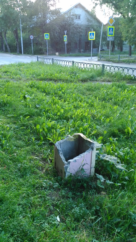 Номер жалобы:23656 Тип жалобы:Ненадлежащее содержание малых архитектурных форм Название объекта:Екатеринбург Регион:Свердловская область Город:Екатеринбург Адрес:Избирателей, 1 Описание жалобы:Необходимо заменить повреждённую бетонную урну Статус: