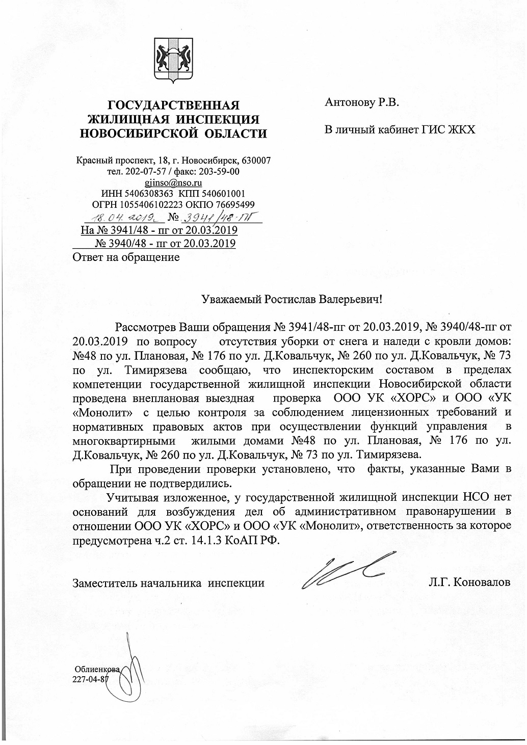 Номер жалобы:51128 Тип жалобы:Иные проблемы ЖКХ Название объекта: Регион:Новосибирская область Город:Новосибирск Адрес:улица Тимирязева, 73 Описание жалобы:Сосульки на крыше дома Статус:
