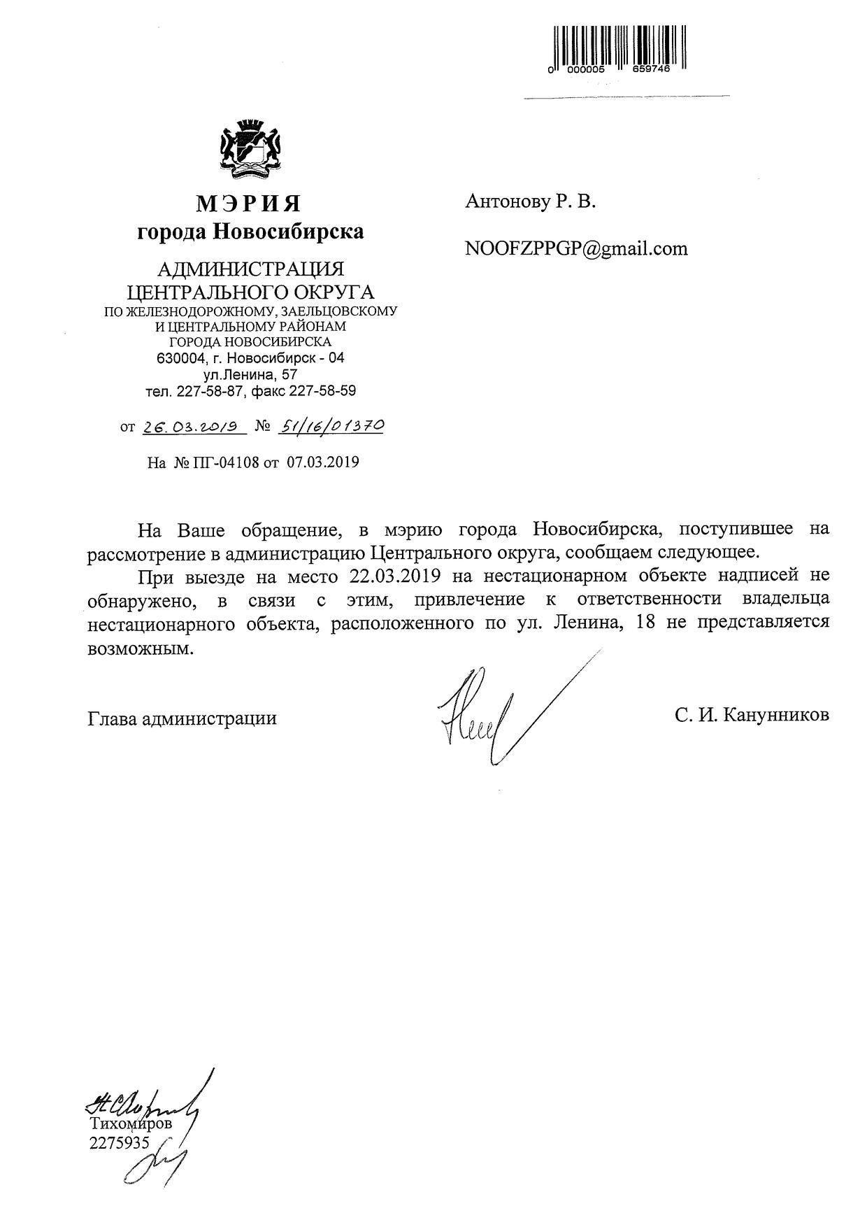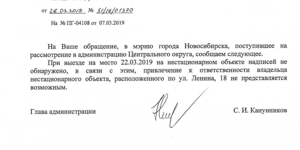 Номер жалобы:50776 Тип жалобы:Иные проблемы ЖКХ Название объекта: Регион:Новосибирская область Город:Новосибирск Адрес:улица Ленина, 18 Описание жалобы:Надписи на киоске рядом с домом Статус: