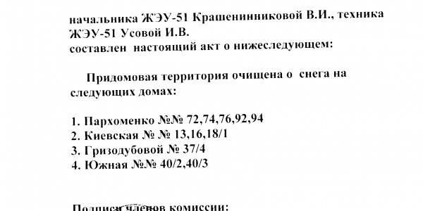Номер жалобы:11276 Тип жалобы:Качество уборки снега во дворе Название объекта:Управляющая Компания Город:Новосибирск Адрес:Новосибирск, улица Киевская, 18 Описание жалобы:Снег на проезжей части Статус: