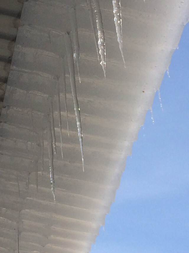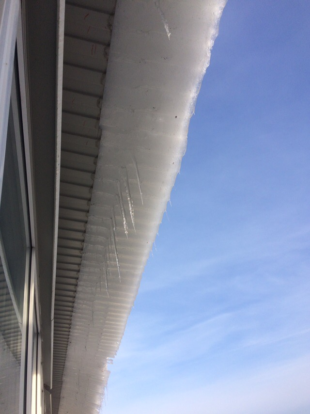 Ледяная масса неубранного снега с крыши. Она уже начинает сползать и может кого то убить Статус: