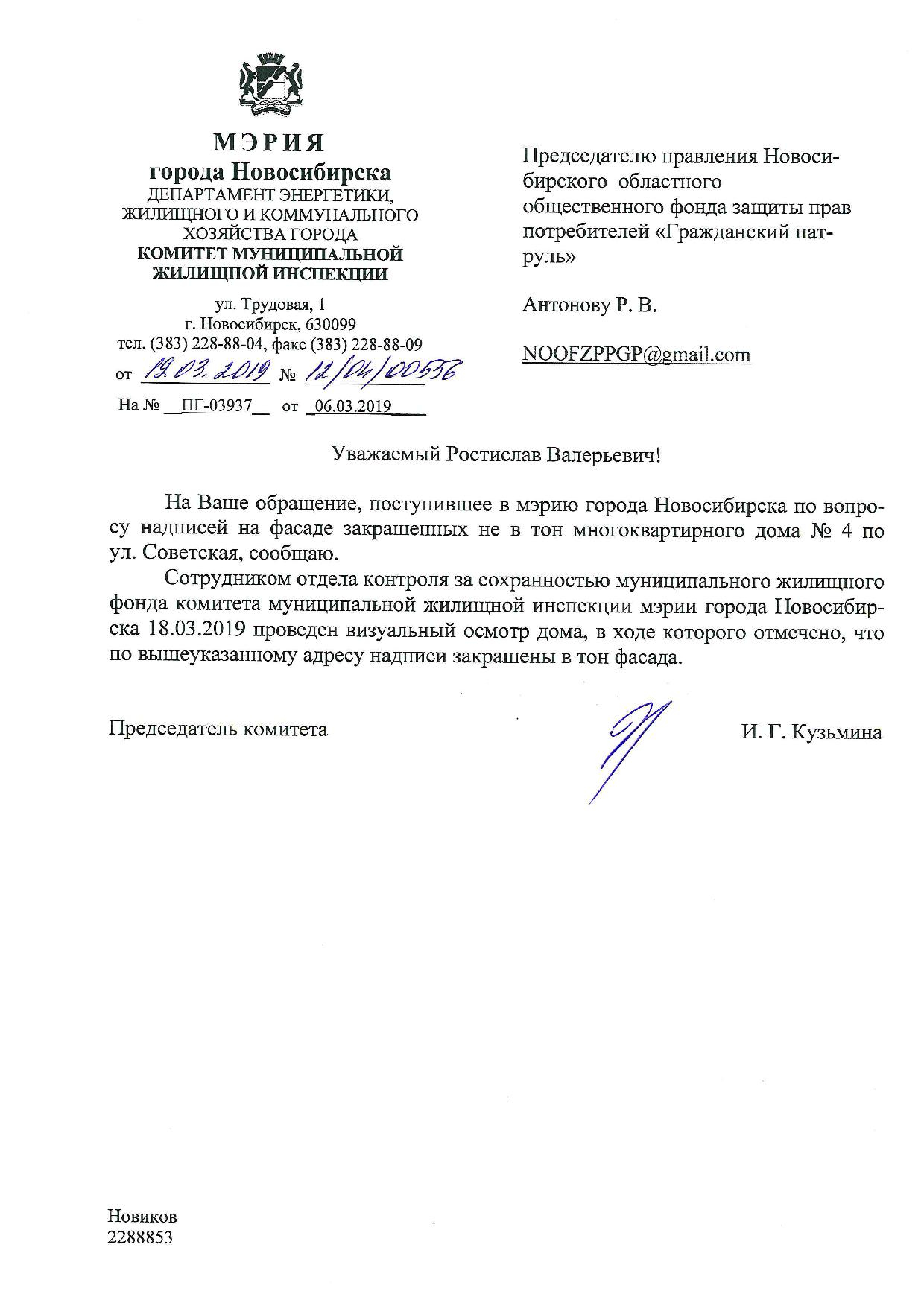 Номер жалобы:50440 Тип жалобы:Иные проблемы ЖКХ Название объекта: Регион:Новосибирская область Город:Новосибирск Адрес:Советская улица, 4 Описание жалобы:Надписи на фасаде дома закрашены не в тон Статус: