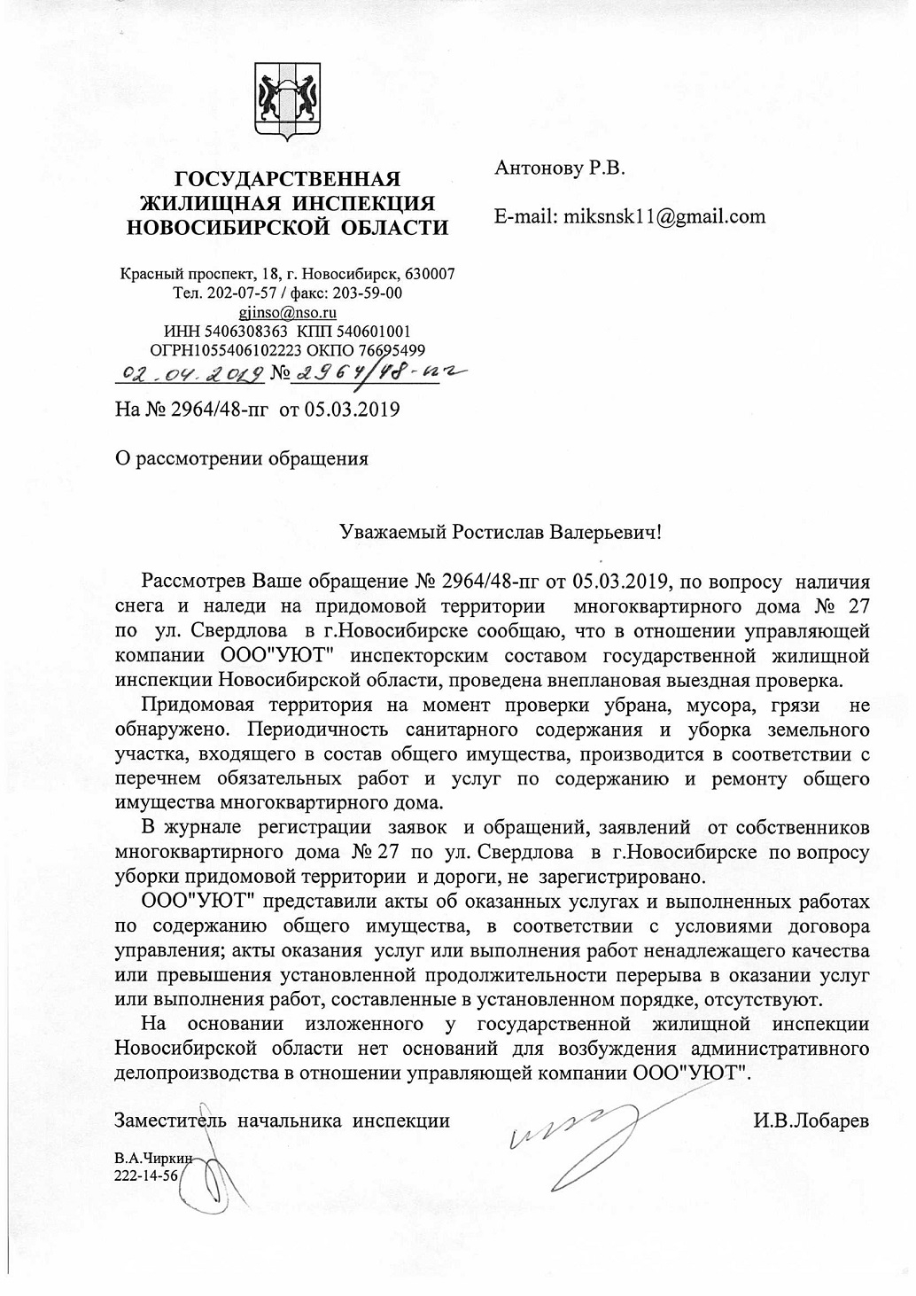Номер жалобы:50359 Тип жалобы:Иные проблемы ЖКХ Название объекта: Регион:Новосибирская область Город:Новосибирск Адрес:улица Свердлова, 21 Описание жалобы:50363 ООО "Уют"