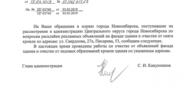 Номер жалобы:50362 Тип жалобы:Иные проблемы ЖКХ Название объекта: Регион:Новосибирская область Город:Новосибирск Адрес:Новосибирск, улица Свердлова, 27А Описание жалобы:Объявления на хозяйственном корпусе Статус: