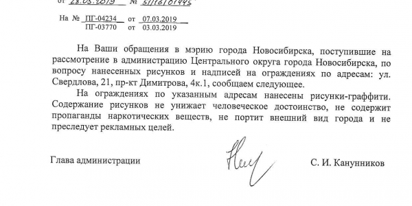 Номер жалобы:50358 Тип жалобы:Иные проблемы ЖКХ Название объекта: Регион:Новосибирская область Город:Новосибирск Адрес:улица Свердлова, 21 Описание жалобы:Надписи на заборе Статус: