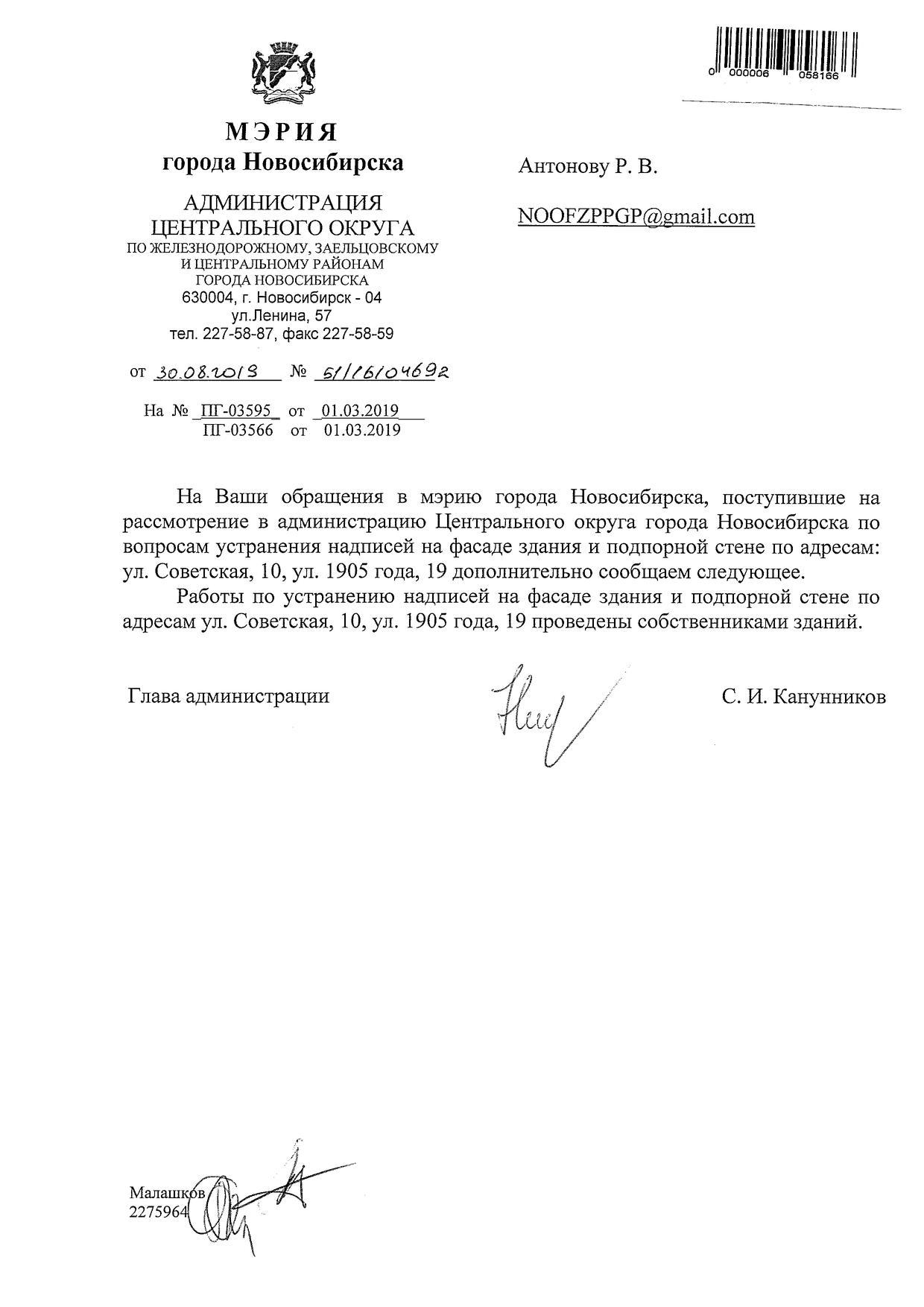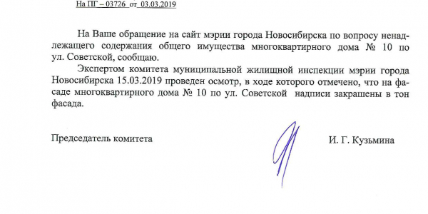 Номер жалобы:50346 Тип жалобы:Иные проблемы ЖКХ Название объекта: Регион:Новосибирская область Город:Новосибирск Адрес:Советская улица, 10 Описание жалобы:Надписи на фасаде дома Статус: