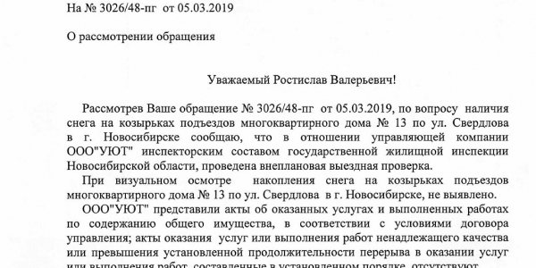 Номер жалобы:50353 Тип жалобы:Иные проблемы ЖКХ Название объекта: Регион:Новосибирская область Город:Новосибирск Адрес:улица Свердлова, 13 Описание жалобы:ООО "УЮТ"