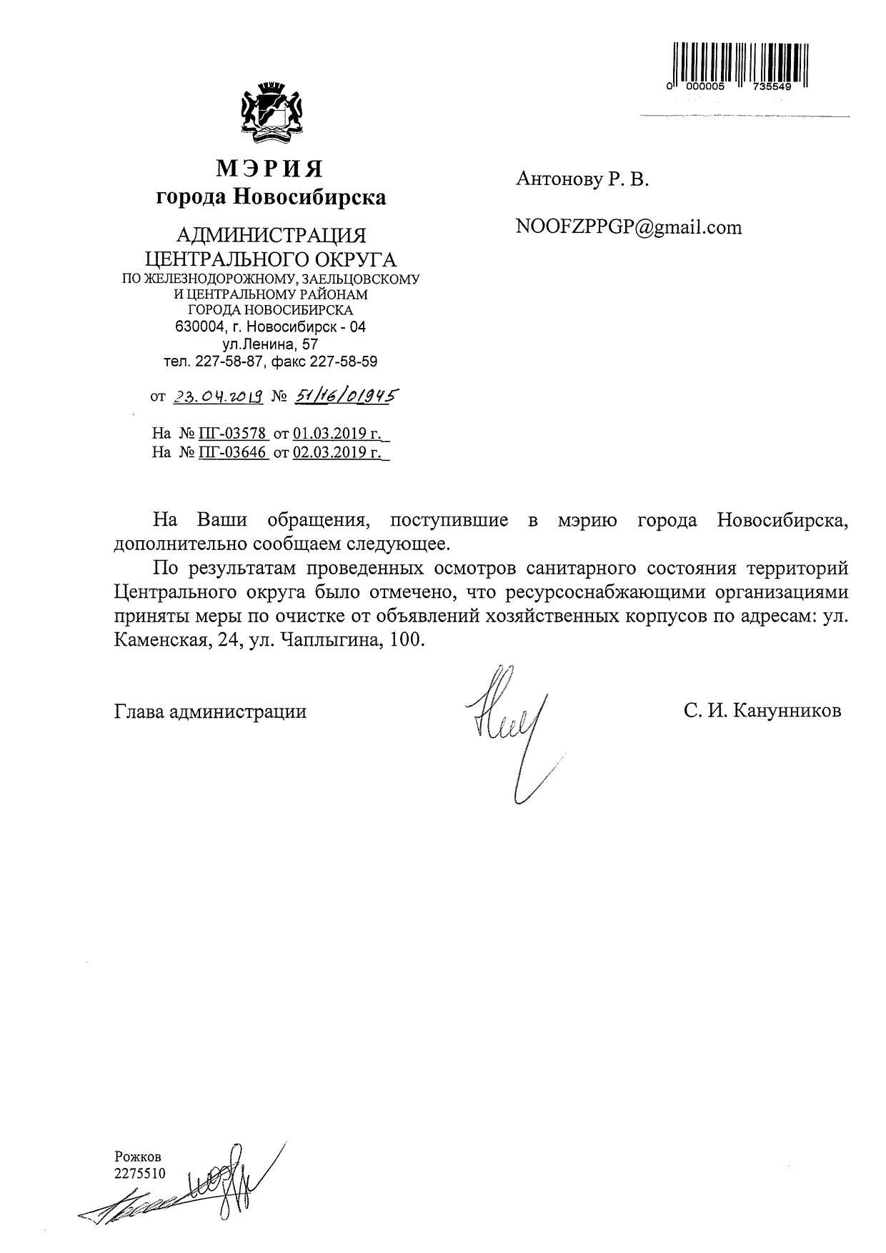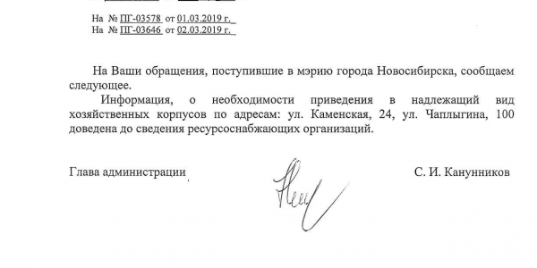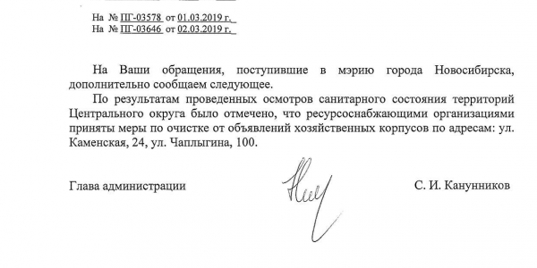 Номер жалобы:50329 Тип жалобы:Иные проблемы ЖКХ Название объекта: Регион:Новосибирская область Город:Новосибирск Адрес:Каменская улица, 24 Описание жалобы:Объявления на хозяйственном корпусе Статус: