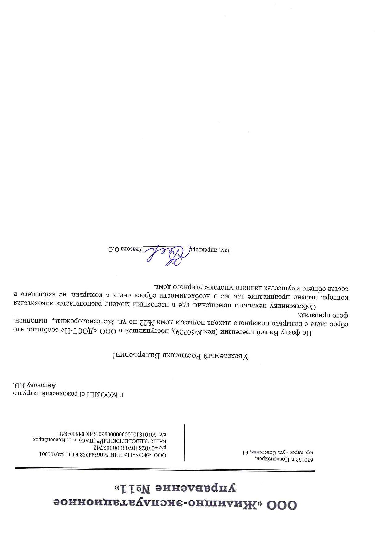 Номер жалобы:50226 Тип жалобы:Иные проблемы ЖКХ Название объекта: Регион:Новосибирская область Город:Новосибирск Адрес:Железнодорожная улица, 8 Описание жалобы:ООО УК "ЭКО ПЛЮС"