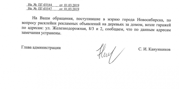 Номер жалобы:50227 Тип жалобы:Иные проблемы ЖКХ Название объекта: Регион:Новосибирская область Город:Новосибирск Адрес:Железнодорожная улица, 8/3 Описание жалобы:Объявления на деревьях за домом Статус: