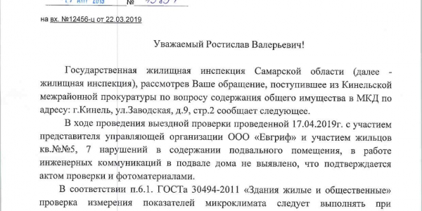 Номер жалобы:49597 Тип жалобы:Иные проблемы ЖКХ Название объекта: Регион:Самарская область Город:Кинель Адрес:Кинель, Заводская улица, 9с2 Описание жалобы:УК компания "Евгриф " отказывается ремонтировать трубы в подвале которые текут с осени ,из за их бездействия покрылось плесенью несколько квартир на первом этаже ,ссылаются на долги у жильцов Статус: