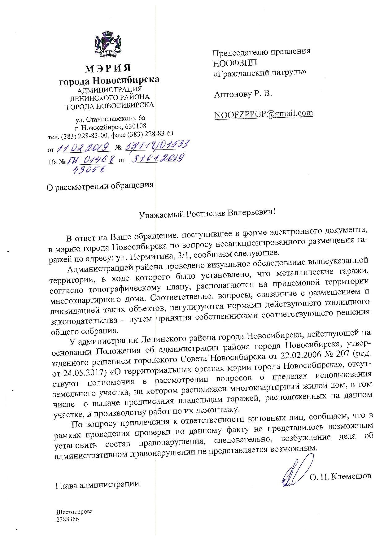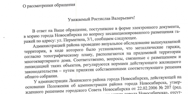 Номер жалобы:49056 Тип жалобы:Иные проблемы ЖКХ Название объекта:Управляющая Компания Регион:Новосибирская область Город:Новосибирск Адрес:улица Пермитина, 3/1 Описание жалобы:гаражи Статус: