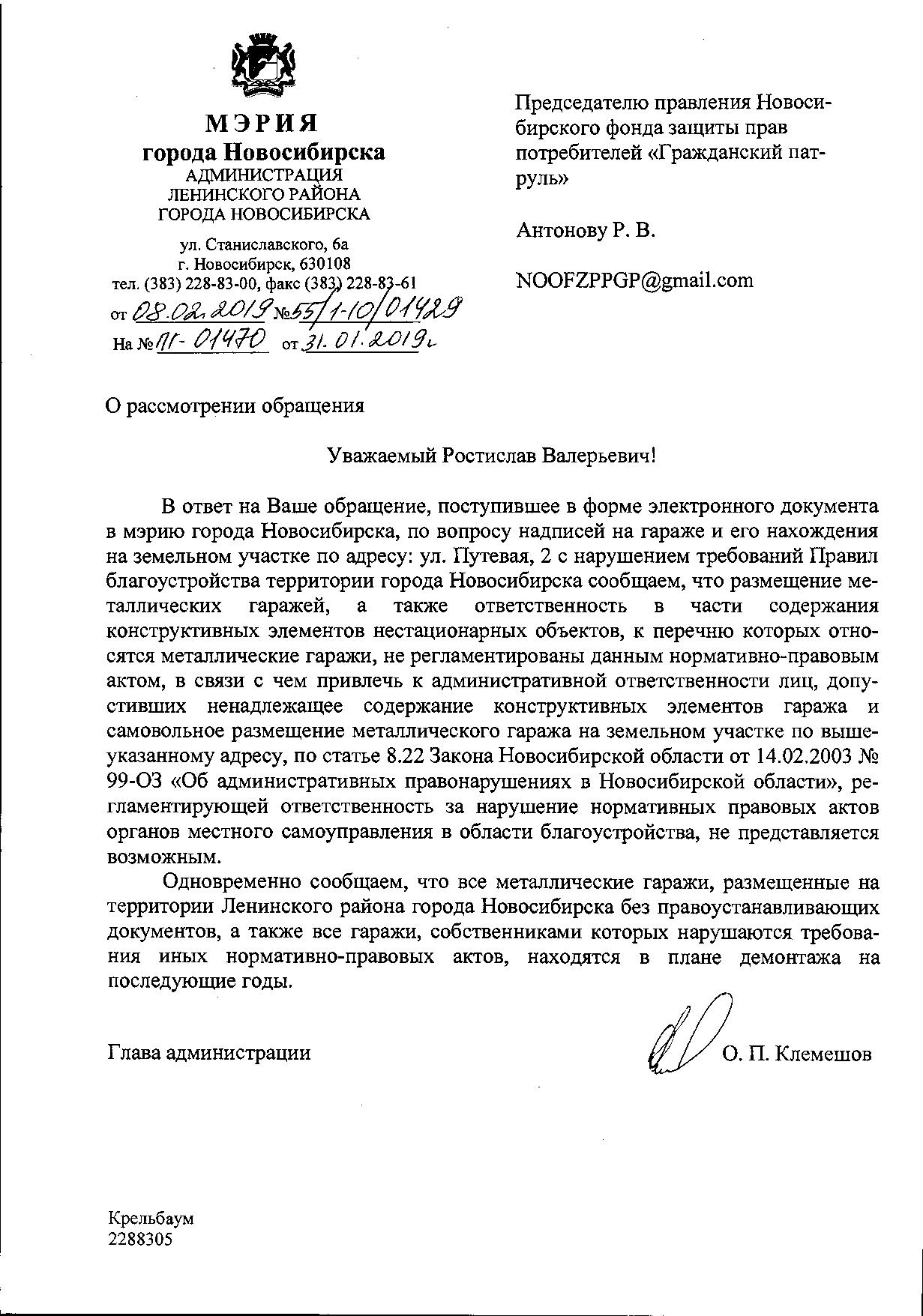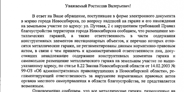 Номер жалобы:49062 Тип жалобы:Иные проблемы ЖКХ Название объекта:Управляющая Компания Регион:Новосибирская область Город:Новосибирск Адрес:ул Путевая, 2 Описание жалобы:гараж, надпись на нем Статус: