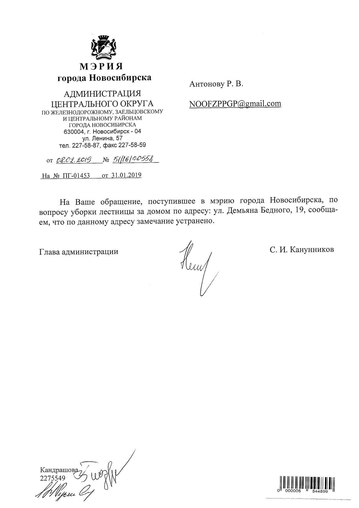 Номер жалобы:48981 Тип жалобы:Иные проблемы ЖКХ Название объекта: Регион:Новосибирская область Город:Новосибирск Адрес:Новосибирск, улица Демьяна Бедного, 19 Описание жалобы:Не расчищена лестница за домом Статус: