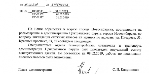 Номер жалобы:48979 Тип жалобы:Иные проблемы ЖКХ Название объекта: Регион:Новосибирская область Город:Новосибирск Адрес:Красный проспект, 82 Описание жалобы:Снег на козырьке при входе Статус: