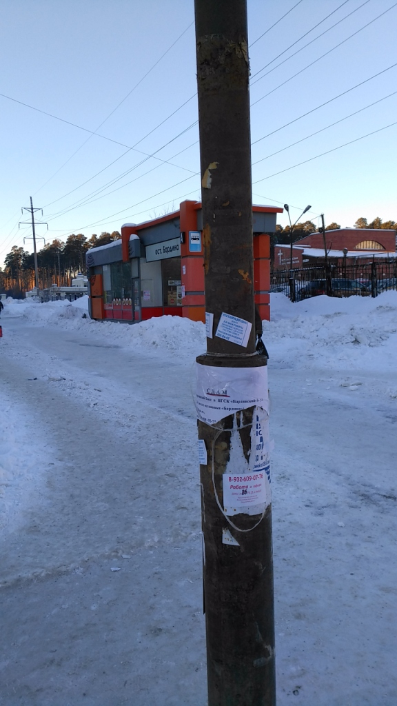 Номер жалобы:13144 Тип жалобы:Ненадлежащее содержание малых архитектурных форм Название объекта: Регион:Свердловская область Город:Екатеринбург Адрес:Академика Бардина, 31 Описание жалобы:Объявления на опорах на перекрёстке улиц Громова и Академика Бардина Статус:
