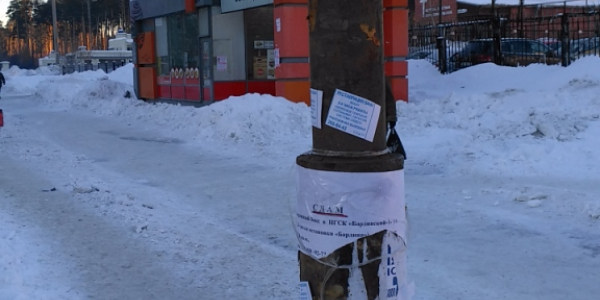 Номер жалобы:14087 Тип жалобы:Ненадлежащее содержание малых архитектурных форм Название объекта:Администрация Екатеринбурга Регион:Свердловская область Город:Екатеринбург Адрес:улица Сулимова Описание жалобы:На опорах освещения вдоль нечётной стороны Сулимова от Данилы Зверева до Учителей, вдоль чётной стороны Сулимова от Менделеева до Учителей, а также вдоль чётной стороны Советской от Уральской до Сулимова расклеены объявления. Статус: