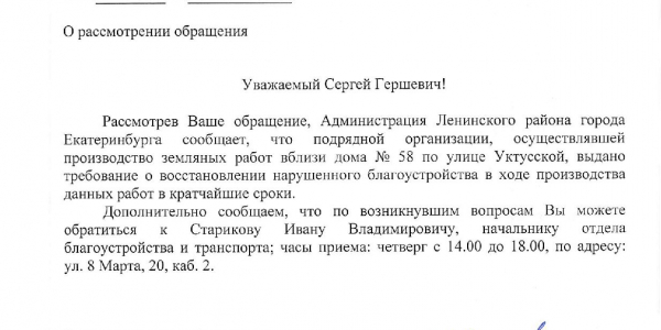 Номер жалобы:14218 Тип жалобы:Ненадлежащее содержание малых архитектурных форм Название объекта: Регион:Свердловская область Город:Екатеринбург Адрес:Уктусская, 58 Описание жалобы:Необходимо установить на место дорожный бордюр Статус: