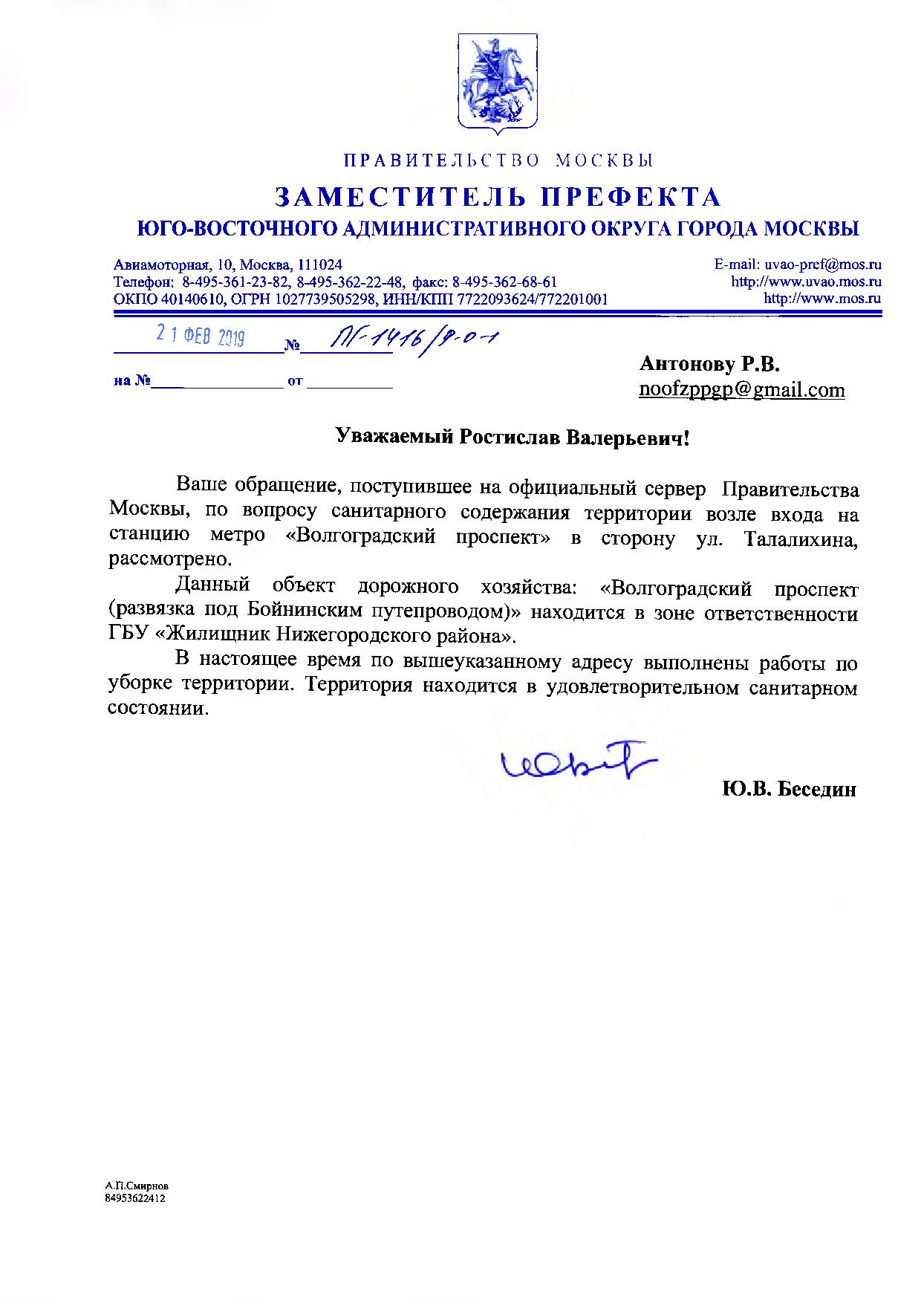 Номер жалобы:48698 Тип жалобы:Иные проблемы ЖКХ Название объекта: Регион:Москва Город:Москва Адрес:Волгоградский проспект, 26с1 Описание жалобы:Не убирается мусор у метро Волглоград.проспект д.стр.5 Статус: