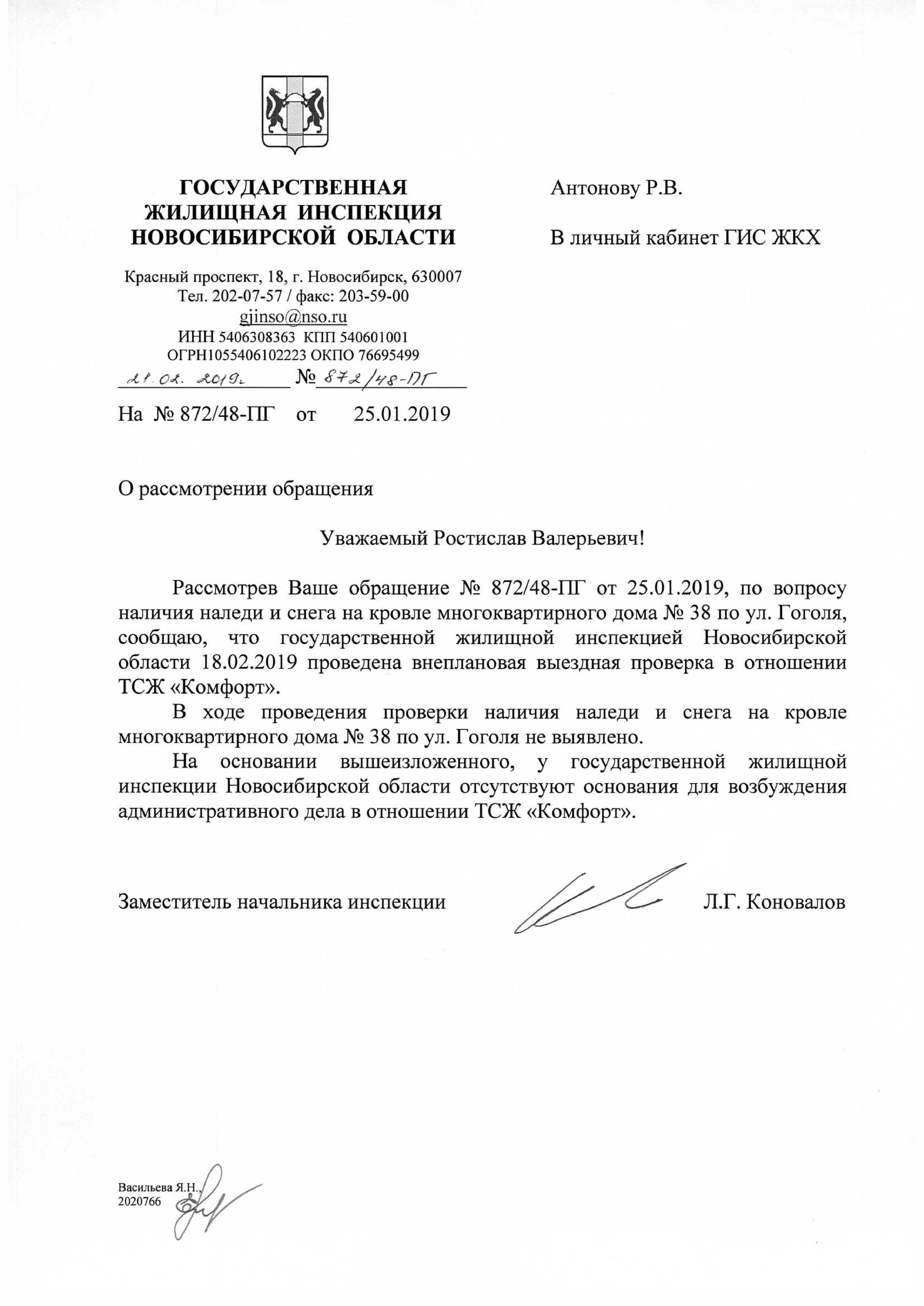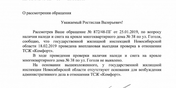 Номер жалобы:48535 Тип жалобы:Иные проблемы ЖКХ Название объекта: Регион:Новосибирская область Город:Новосибирск Адрес:улица Гоголя, 38 Описание жалобы:ТСЖ "КОМФОРТ"